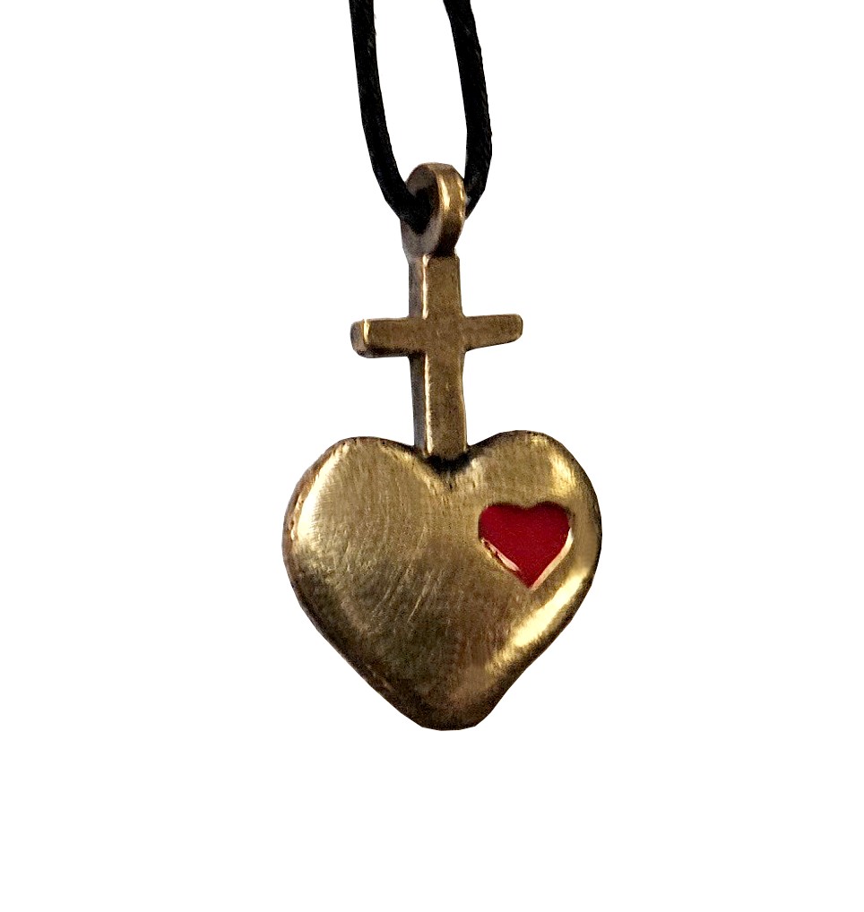 • Pendentif croix Sacré-Cœur bronze émaillé 2,2 cm